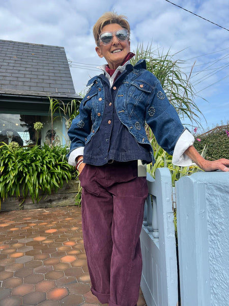 Funky two toned denim jacket with sparkle details and unusual assymetrical shape.