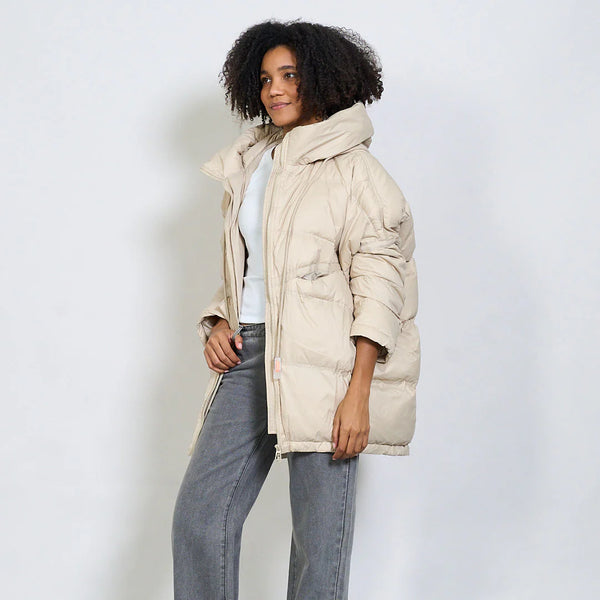 Oversized hooded puffer jacket with drawstring detail