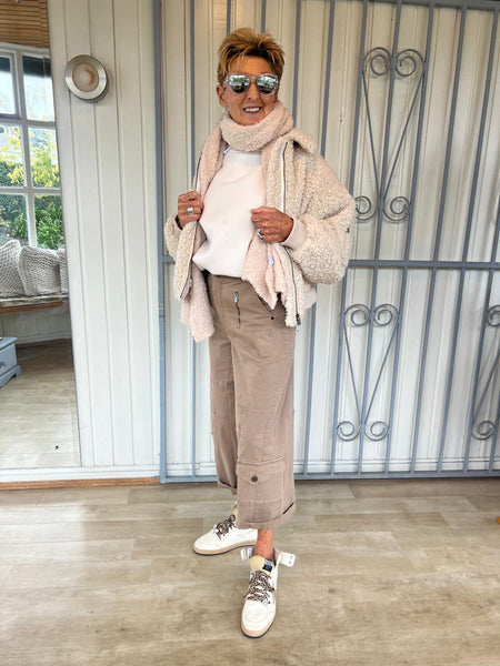 New in both fit and detailing, the Out Run trousers feature a wide leg from the hips down, enhanced by asymmetric paneling, applied pockets, and topstitching that adds movement and dimension to the silhouette. Waistband with front button, belt loops, and front zip fly with metal zipper. Vertical front pocket with metal zip. Slanted side pockets. Flap pocket with button on the lower left leg; metal zip pocket on the lower right leg. Two patch pockets at the back. Visible topstitching and seams. • Stretch cotton, lightweight, smooth handfeel.