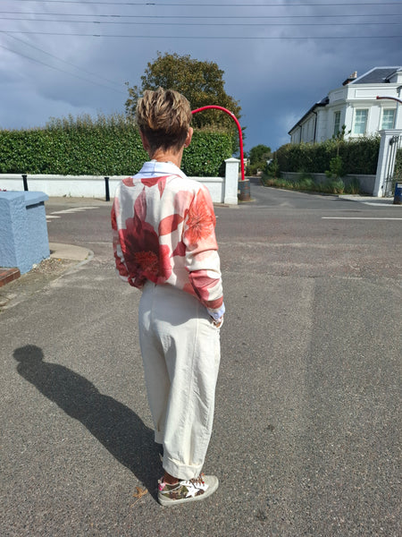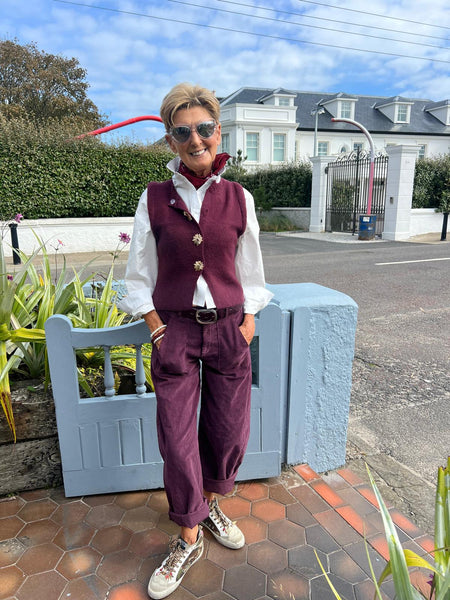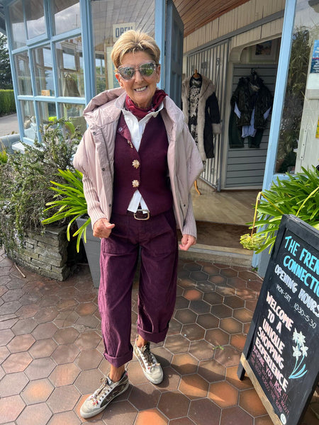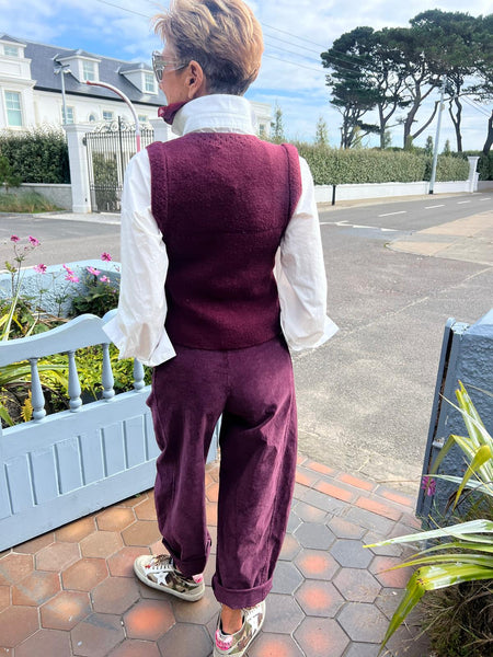 Gorgeous barrel style corduroy trousers. Soft touch. Elastic waist.