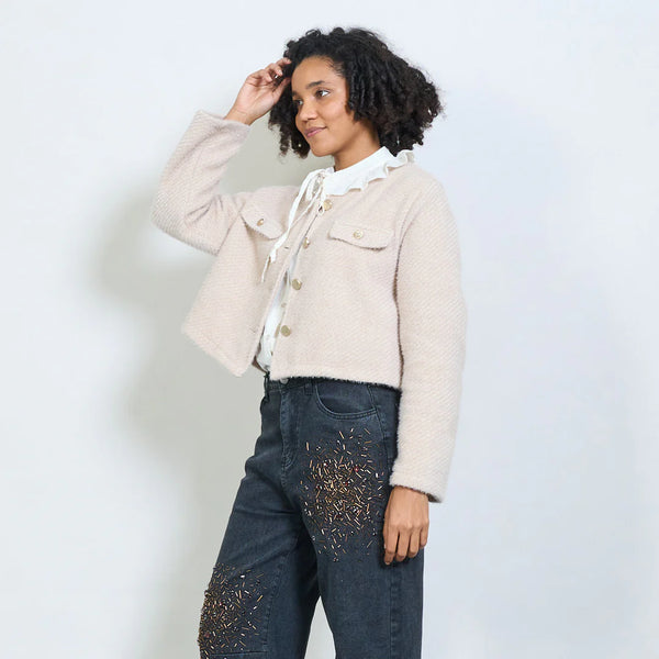 Crafted in a soft textured fabric with a subtle herringbone effect
