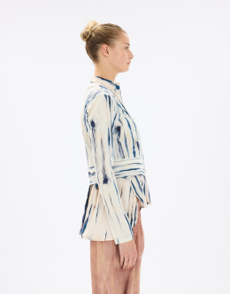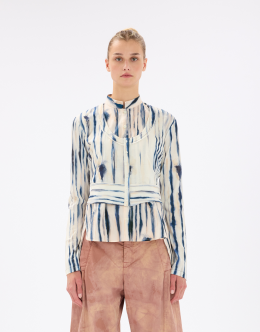 One of the brand’s signature pieces, the Brig cardigan features a micro fit and is defined by unique details such as raw-edge seams and contrast topstitching. The standout element is the floral print that seems to "drip" into soft, striped gradients. Deep round neckline. Front button closure. Long sleeves. • Makò cotton jersey, lightweight, soft handfeel.