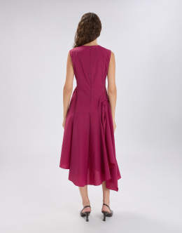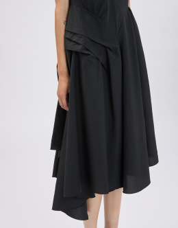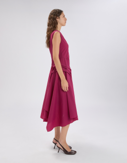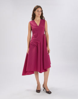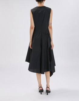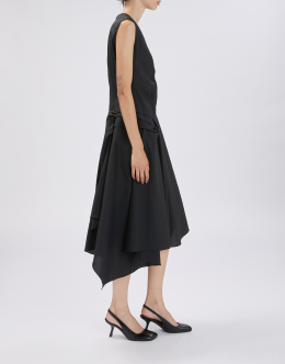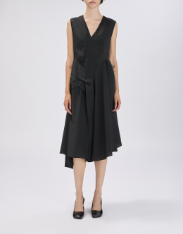 The Grammar dress combines a feminine design with a stretch technical fabric featuring a crinkled, hammered-effect texture. The result is a versatile piece that flatters the figure and adapts to various occasions. V-neckline. Back zip closure. Sleeveless. Side darts and pleats. Irregular hem. • Stretch nylon, lightweight, crêpe handfeel. • Unlined.