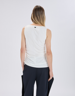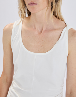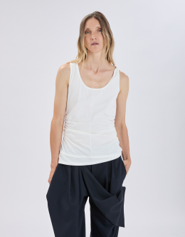 The classic white cotton jersey tank top is elevated with refined details such as side gathering and a double hem. Round neckline. Sleeveless. Side gathers. Double hem. • Stretch cotton jersey, lightweight, soft handfeel.